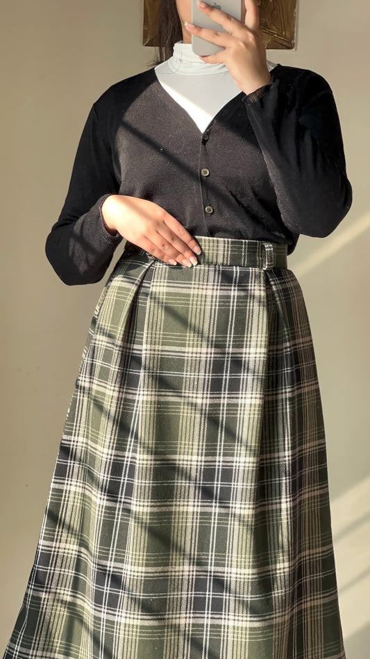 Sold outGreen Check Wool Midi Skirt