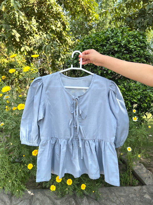 Blue front tie top