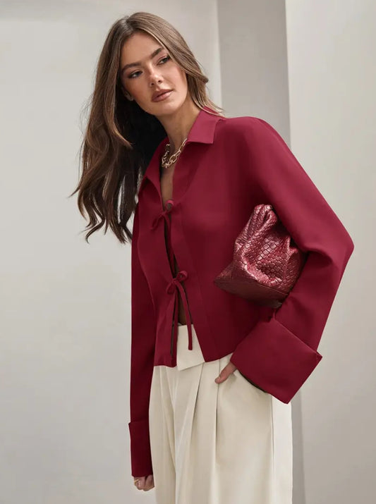 Maroon front tie blouse