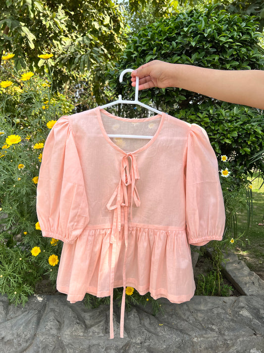 Baby pink front tie top